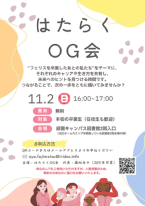 2025年11月2日(日) 卒業生有志の会によるイベント『はたらくOG会』のお知らせ