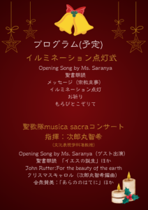 ☆聖歌隊musica sacraクリスマスコンサート(チャペル)(終了予定:19:00)